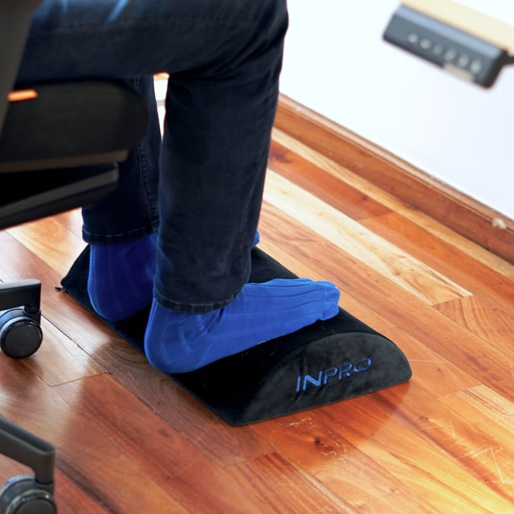 O apoio para os pés inteligente proporciona um suporte firme e favorece uma postura ereta ao sentar. Está comprovado que ajuda a reduzir dores nas costas, pés, pernas e joelhos, além de minimizar a fadiga durante longas jornadas.